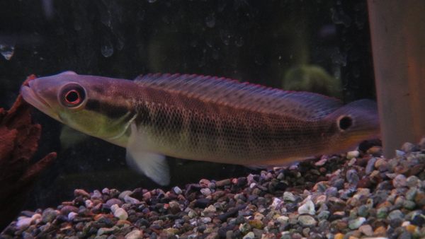 モケーレムベムベとザイールグリーンは学名が入れ替わっちゃってややこしいので旧モケーレ(現レトロ)は当店では以前からの流通名であるザイールグリーンでいきます。入荷したばかりでまだ色はとんでいますが、現状で頭や胸ビレはキレイな黄色なので飼い込んであげればキレイな緑色が発色しそうな感じの良個体です!安いけどキレイな種類ですよ!