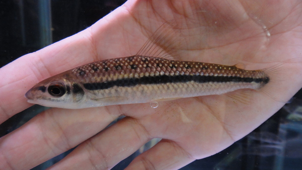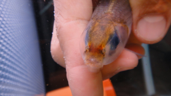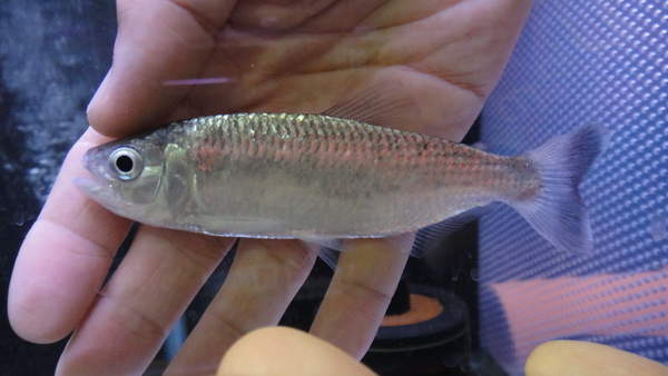とても珍しいヘミオダスに近縁なカラシンです。一般的なヘミオダスよりも大きくなる魚で、滅多に輸入されない超激レアな魚です!!当店への入荷も今回が初めてです!さらにリオプレットダエバ(ネグロ水系の下流エリアです)産は日本初入荷の産地で、しかも輸入されたのはこの1匹だけです!とても面白い魚で、画像では分かりにくいと思うのですが頭部の皮膚が透けているんです!なんと表現したらいいのか難しいのですが、透明のヘルメットをかぶったような感じとでも言えばいいのでしょうか、とにかく不思議な魚です。小さいうちはこの特徴は出ていないらしく、成長とともに目の周りから透明の膜のようなものが発達してくるそうです。なんとも変わった特徴を持った謎のカラシンです!中型カラシンマニアの方必見ですよ!上段の画像です。2つの画像は同一個体です。