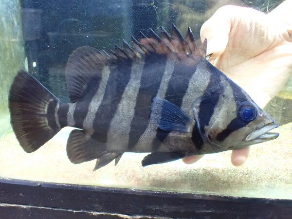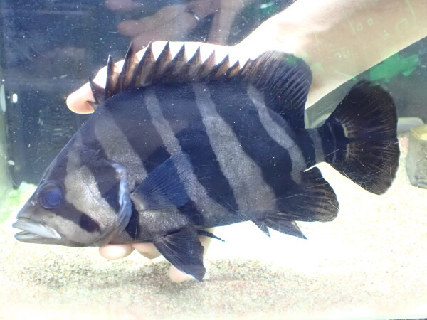 これも今回大特価です。15cm位のが前から1匹いてそれ¥22000なんですよね・・・。今回安く仕入れられてうれしい反面、高く仕入れちゃった個体が売れなくなって困るわぁ・・・。まぁそんな都合はお客さんには関係ないんでね、今回来た小さいのは大特価で販売します!これも来た時少し塩入ってたから今はまだ少しだけ塩入れてますが、純淡水でも全然大丈夫です。pHの低下にも順応しハマギギの中でも特に丈夫で飼いやすい種類ですよ!見た目もかっこいいし最高のハマギギです!中段左の画像です。