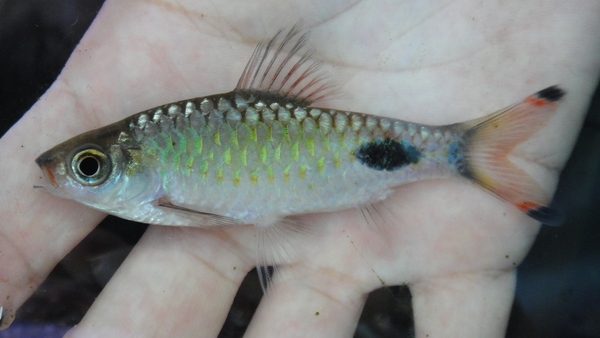 ロハニやアッシミリスなどいくつか知られるフィラメントーサスグループの中でも一番大きくなる種類です。最大で15cmを超えますので飼い込まれた成魚はかなりの迫力です!鱗が緑色に輝きすごくキレイです!よくアロワナの水槽の掃除係にパロットファイヤーやレッドフィンバルブを入れたりしますが、大きいフィラメントーサスを入れるっていうのはいかがですか?