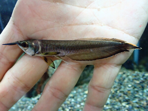 これ大好き!一見地味なスネークヘッドですが、飼い込むとオレンジが発色してすごくキレイな魚になります!スネークヘッドの中では性格も大人しく他の魚との混泳もさせやすいです。最近は輸入少な目で今回もけっこう久しぶりの入荷ですし、スレやヒレ裂けも無く状態良く入荷していますのでオススメ!お探しだった方はお見逃しなく!