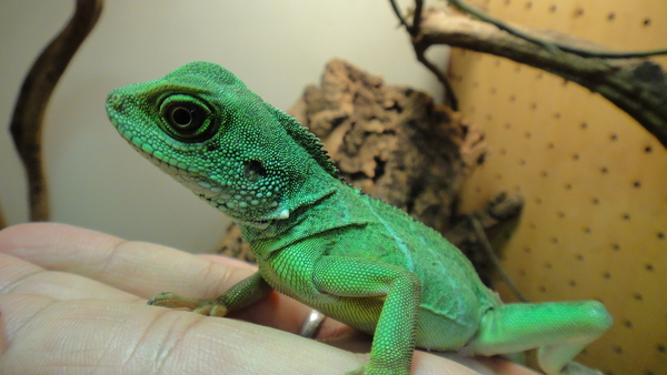 丈夫で飼い易くて性格も大人しい個体が多いのでオススメのトカゲです!緑の体色のためかグリーンイグアナと比べられることが多いですが、はっきり言ってグリーンイグアナよりもウォータードラゴンの方がはるかに飼い易いです!なのでビギナーの方で、エサが野菜だからとかそんな理由で安易にイグアナを飼うなら、餌がコオロギでも絶対にウォータードラゴンの方がいいですよ!最後まで飼う覚悟もなくイグアナを買うと後で後悔しますよ・・・。