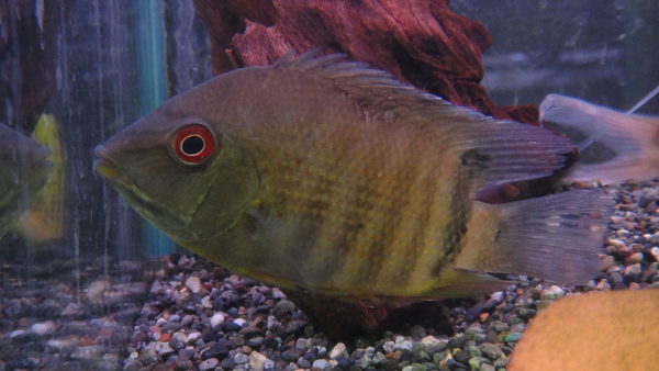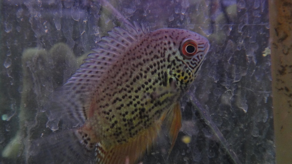 ガイアナ産のキレイなノッタータスが入荷です!淡いメタリックグリーンに濃い赤紫のスポットが入りとってもキレイです!成魚ではさらに派手になり、個体によってはヒレがオレンジになり、体色の緑もより鮮やかになります!右上の画像です。