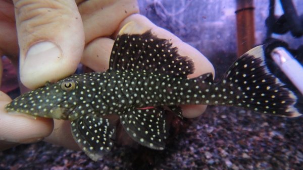 名前の通りビッグスポットが目立つプレコです。タイガープレコの名前がありますが、このプレコ実は大きくなるんです。ここ最近はあまり大きい個体は輸入されなくなってしまいましたが、昔はこれの20cmを軽く超えるようなサイズの個体も輸入されてたんですよ。大きいのは超かっこいいですよ!ぜひ育て上げてください!右下の画像です。
