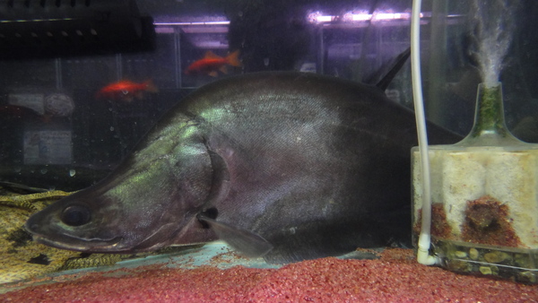 久々にチタラロピスが入荷です!このサイズで輸入された迫力満点の個体です!!緑に光る黒紫色のボディが超かっこいいです!個人的にはナイフフィシュの中ではこのロピスが一番かっこいいと思います!もう少し小さいサイズで来てくれるとうれしいんですが、滅多に輸入されないのでサイズを選ぶなんて贅沢は言ってられません!もうこの魚は「来たときに仕入れる!」それだけです!!なので欲しかった方も「いる時に買う!」ですよ!1匹のみです!!