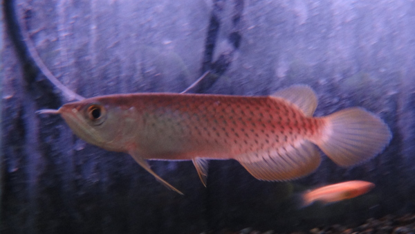グリーンアロワナで入荷しましたが、ヒレがうっすらオレンジがかっていてバンジャールみたいです!バンジャールなら超ラッキー、大当たりです!だってバンジャールならこの倍位の値段はしますからね!顔もスプーンヘッド気味で将来が楽しみな個体です!超オススメ!
