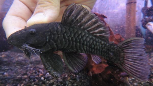 久々にガリバー入荷!今では超貴重な激レアプレコです!ブラジルからの輸出に規制がかかっているため、全然入ってこないんです!同属のアグアも規制の対象ですが、アグアはペルーからも来るので手に入りにくいというイメージは無いかもしれませんが、ガリバーはブラジルからしか来ないので本当に貴重なんです!今回2匹のみ輸入されましたが、次はいつ手に入るかわかりませんので2匹とも仕入れちゃいました!バットマンガリバーとも呼ばれることもありように、大きな胸ビレが特徴で、全身トゲトゲの漆黒のボディが超カッコいいです!マニアの方、この機会をお見逃しなく!!