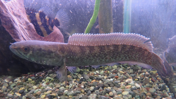 エメラルドスネークヘッドなんて呼ばれることもありますね。ブルームーンより少し遅れて輸入されるようになったインド産の美麗スネークヘッドです。スチュワートにも似ていますが、スチュワートよりも細かいスポットが腹部側にびっしりと入り、背中側のバンドもより細いです。色もメタリックなエメラルドグリーンからメタリックブルーの発色がキレイで、目を惹く魚です。今回はけっこう体色の濃いタイプの個体が入荷しました。こういう色の濃いタイプは発色するとグリーンではなくブルーが強く出ます!ガロの中でも少ないタイプだと思います!マニアの方いかがですか?右上の画像です。