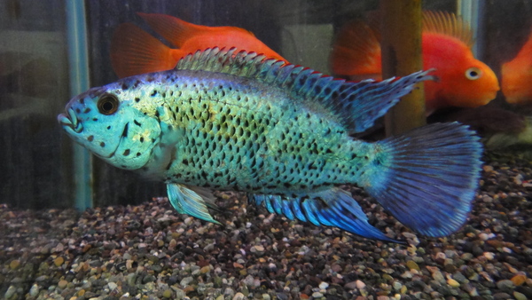 激青!!こういう大きめサイズのブルーデンプシーって滅多に入荷しませんよ!普通のジャックデンプシーはかなり気が荒く混泳も難しいですが、ブルーデンプシーは意外と混泳させやすいです。この個体は現状40cmの水槽でパロットファイヤー2匹とスチュワートスネークヘッド1匹と混泳させていますが今のところ全然問題ありません!大人しめの極美個体ですので超オススメです!!ただし、混泳は自己責任でお願いしますね。