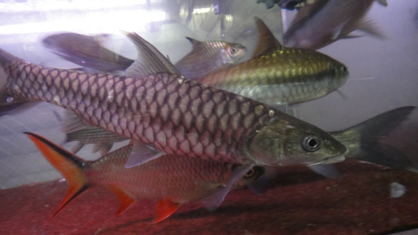 これはあまり派手な魚ではありませんがとっても珍しい魚です。パッと見はレッドフィンバルブを地味にして少し伸ばしたような感じですが、最終的な大きさはレッドフィンバルブの比ではありません!水槽内でどこまで大きくできるかは分かりませんが、野生では80cmを軽く超える大きさになるそうです!滅多に入荷しない激レアカープで、当店でも今までに数個体しか来たことがないと思います!入荷は1匹のみです!マニアの方は必見です!右下の画像です。