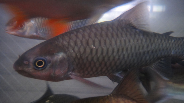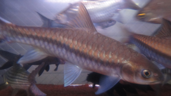 きめ細かい鱗でコクレンとかハクレンを細長く伸ばしたような雰囲気ですが、口は下向きでラベオのそれといった感じです。最大サイズなど詳細は不明ですが、性格は大人しいようでほかの魚と混泳させていますが全然大丈夫です!