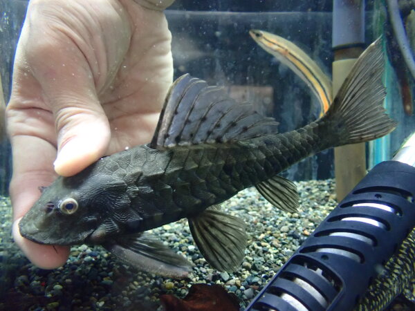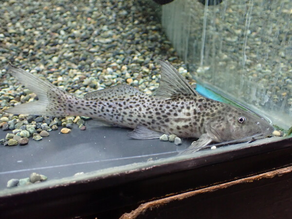 最近かなり輸入量が減ってるレオパードキャットです。人工飼料にも餌付きやすく飼いやすいナマズです。名前の通り細かいスポット模様がヒョウ柄みたいでかっこいいです!左上の画像です。