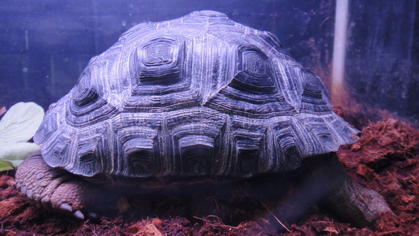 この個体もベビーからの飼い込みですが、かなりキレイに育っています!ベビーから育てると普通はもっとゴツゴツした甲羅になってしまうのですが、育ってきた環境や餌が良かったんですね、飼い込みにしてはかなり滑らかな甲羅をしています!すばらしい個体で状態も抜群で絶好調です!ただしケヅメリクガメもゾウガメ同様にかなり大きくなります。ゾウガメに比べると全然価格は安いですが衝動買いはダメですよ!最後まで愛情を持って飼育してくれる方にお願いしますね。2つの画像は同一個体です。