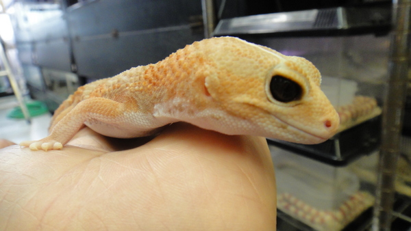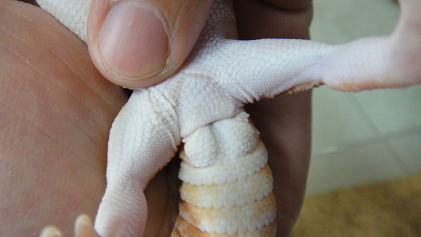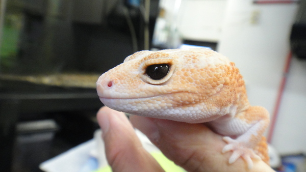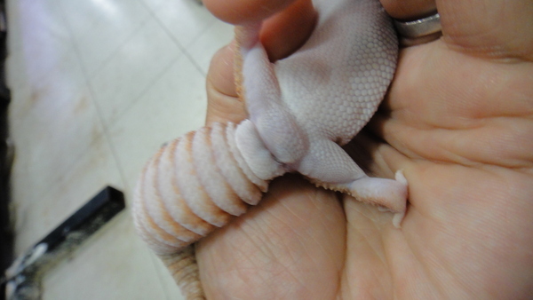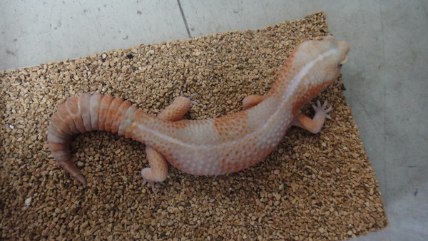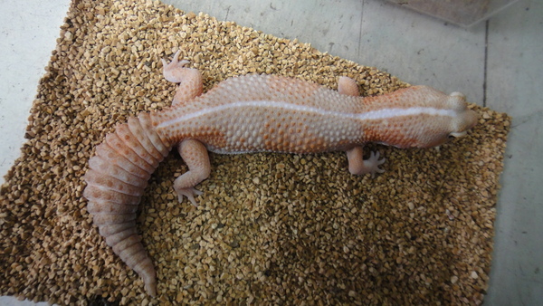 アルビノニシアフリカトカゲモドキ 上段、中段左が♂の画像です。中段右、下段が♀の画像です。