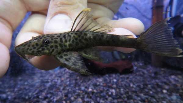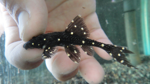 ペルーのアグアのベビーです。黄色いスポットがキレイな個体です。小さいですが、しっかり育てればちゃんと大きくなるプレコです!