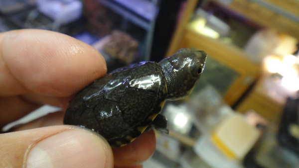 こっちもすごく小さいベビーです。まだハッチしたばかりの甲長3cm位のベビーです。小さいですがしっかりしていて餌食いも良好!もちろん完品で、尾も先までキレイですよ!