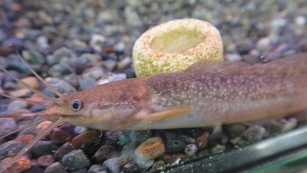 たぶんだいぶ前にも入荷したことがあったと思います。その時はヒメジカープのインボイスだった記憶があります。海水魚のヒメジ(オジサンの名前の方が有名だと思います。)に似たシルエットから適当に付けられた名前だと思います。今回のこのクラリバルブという名前の由来は分かりませんが、日本のニゴイとかに近い系統のコイだと思います。かなり久々の入荷で、とても珍しいです。滅多に入ってこない魚ですよ!
