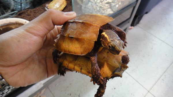 数年前に比べて入荷が激減しってしまったカメです。たまにポツポツと入ってくるだけになってしまい、なかなか仕入れられなくなってしまいました。個人的に大好きなカメなので残念です。よく動くカメで、立体的な動きも巧みです。後縁部がギザギザした甲羅もかっこいいですし、クチバシが発達した顔も魅力的です!サイズもあまり大きくならず良いところばかりの素晴らしいカメです!神経質なイメージがありますが、入荷後すぐにコオロギをバクバク食べていますので状態は良好です!甲ズレや尾切れの無い完品をセレクトしてますが、中には爪が折れてる個体もいますのでそこはご了承ください。元はあるのでしばらくで生えてくると思います!もちろんド完品の個体もいますのでそういうのが良いという方はお早目に!