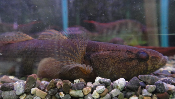 すごいの来ました!!これやばいです!過去にも30cmクラスのホシマダラが入荷したことはありましたが、35cmは当店に入荷した中では過去最大です!ホシマダラ自体入荷が少ないのに、こんなでかい個体は滅多に見られませんよ!もう幻レベルです!しかもありがたいことに今回はペアでの入荷なんです!ヒレの形状、総排泄腔の形状、発色から見て雄と雌なのはほぼ間違いないと思うのですが、一番の極め付けはこのサイズの個体が2匹で同じ水槽で仲良く泳いでるということです!通常カワアナゴ亜科の魚は幼魚でも同種や同系統の魚とは激しく争うことが多く、大型個体ではその性質がより顕著で、かなり激しく争うことがほとんどです。ですが今回の2匹は全く争うことなく、威嚇すらしません。こんな素晴らしいペアは次にいつお目にかかれるかわかりませんよ!2匹セットの値段なのでまぁまぁ高価ですが、マニアの方は是非ご検討ください!もししばらく売れ残ったらバラでの販売も検討しますが、とりあえず当面はペア売りのみのつもりです。ただし販売後もペアであり続けるということを保障することはできませんので悪しからず・・・。現状純淡水でストックしております!