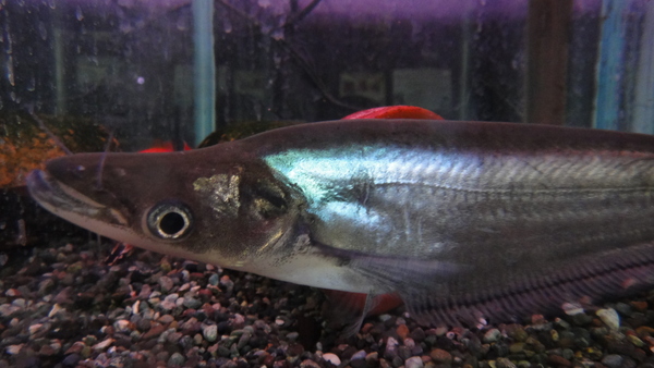 青いビカビカのナマズです!大きくなる種類ですが、トランスルーセントグラスキャットの親戚です。このサイズでももうすでにかなり青いですが、大きくなるともっと青くなります!すごくキレイなナマズですよ!