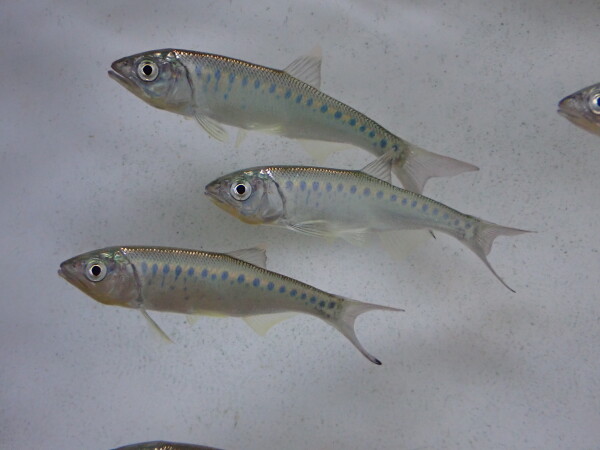 インド洋産のキビレの1種です。インド洋に分布するキビレも日本の沿岸域に分布するキビレも前は同じ種類ということになっていましたが、2013年にインド洋のキビレは3種類が独立して新種記載されています。なので今回入荷したキビレは日本のキビレとは別種です。今回来たのがインド洋に生息する3種類、アラビアンイエローフィンシーブリーム、ウエスタンイローフィンシーブリーム、スポッテッドイエローフィンシーブリームのうちのどれなのかはわかりませんが、日本のキビレとは違う珍しい種類なのは間違いありません。汽水魚マニアの方はお見逃しなく!ちなみに現状では0,3%で塩入れてストックしてます。中段右の画像です。