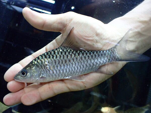 これも成長するとヒレが青くなるのでブルーフィンカープとかブルーフィンマハシールなんて呼ばれることもあって、タンブロイデスと混同されがちでややこしいんですが、タンブロイデスのブルーフィンカープとはまた別の魚です。これもキレイになるいい魚です!左下の画像です。