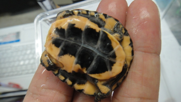 背甲からは画像でもほとんど歪みが分からないかもしれませんが、腹甲からの画像で少し曲がってるのがわかると思います。