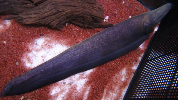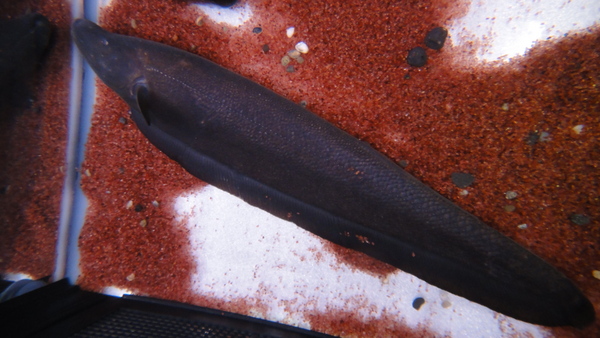 超激レア!!しっかり吻部の伸びた迫力個体です!雌雄の判別がつかないような小さいサイズのドルフィンナイフは今までにも少数ですが入荷したことがありましたが、ここまで立派な個体の入荷は初めてです!素晴らしいです!しばらく前に入荷して餌食いなどをチェックしながら様子を見ていましたが、餌食い良好で状態もバッチリです!このサイズで輸入された個体ですので少々の尾の先の欠損などはご了承ください。尾の先端が少し短い以外は欠点もなくキレイです!上段の画像です。