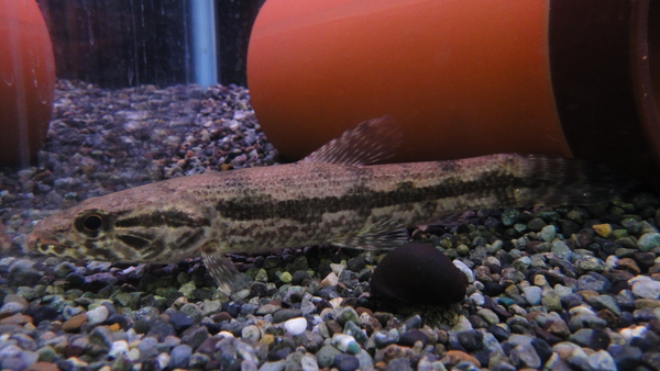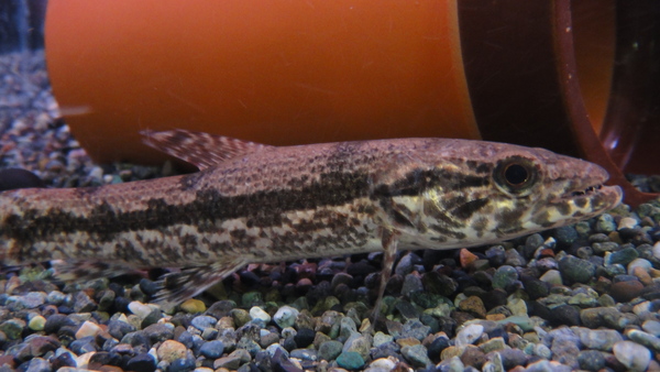 こっちはよく見る普通のシャベルノーズキャットで、Sorubim limaです。図鑑には全長60cmなどと書いてあることが多いですが、実際は成長も遅くそこまで大きくなることはまずありません。60cm水槽でもじっくり飼えますし、性格も大人しいので大きくならない方がいいという方にはこっちがオススメです!