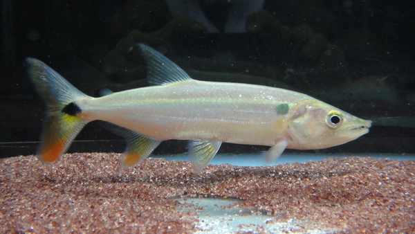 超ナイス!!サイズもナイスだし、顔つきもナイス!!額の反ったスプーンヘッドのような超かっこいい顔の個体です!しかも大きめで存在感あります!今回のレッドフィントーピードは産地が珍しいです!マラジョー産ということで入荷していますが、当店ではマラジョー産のレッドフィントーピードは初入荷かもしれません。めったに入ってこないレア産地ですし、河口産ということですから、もしかしたら大きくなりやすいかもしれませんね?!入荷したばかりでまだ完全には発色していないと思われますので、落ち着いたらヒレの赤はさらに濃くなると思いますよ!