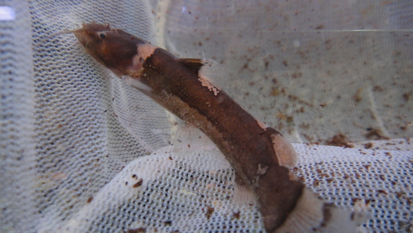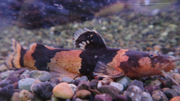 超激レアの小型ナマズが入荷です!こんなナマズ初めて見ました!スレンダーなロングボディで、頭は扁平です。バンブルビーキャットと同属のナマズだと思われますが模様も独特で、バンド状にはならず、背部にストライプ状の模様が入ります。輸入元の話では初入荷とのことです。このてのナマズはなかなか狙って同じものを仕入れるのが難しいので、次回の入荷がいつになるのかはわかりません!いる時が買い時ですよ!マニアの方には超オススメです!といってもこういう魚のマニアの方ってそんなにはいないんんだろうなぁ・・・。下段の画像です。2つの画像は同一個体です。