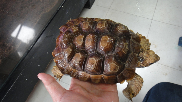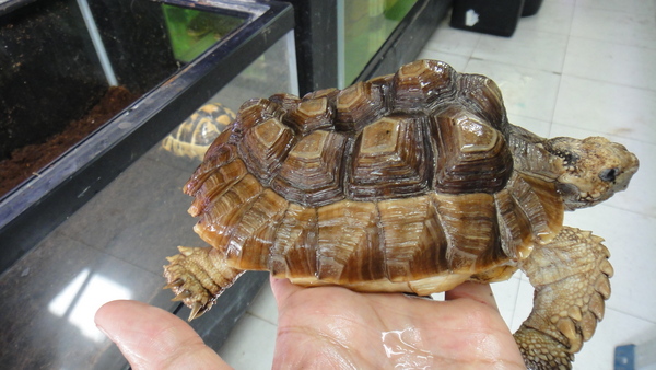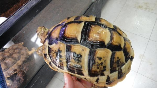 こっちも飼い込みですが、画像の通り背甲が変形してしまっています。甲羅の状態は良くないですが、元気で餌も良く食べます。どなたかかわいがってあげてください。