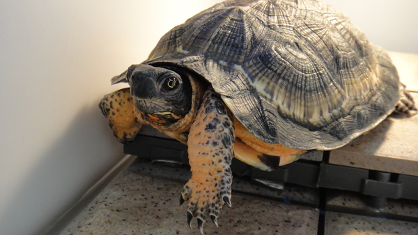 最近全然見かけなくなりました、とっても貴重な北米産激レア種のモリイシガメが入荷です!しかも尾切れ、爪欠け、甲ズレのない完品です!餌食いも良く、状態も抜群です!とても丈夫で、低温にも強く飼いやすいカメです!また長寿なカメとしても有名で、飼育下で58年も生きた記録があるそうです。足や首のオレンジの発色も鮮やかでキレイです!オスメスの判別はまだ若い個体なので画像を参考にして頂きたいのですが、たぶんメスっぽいです。とても貴重なカメですからぜひペアをそろえて繁殖を狙っていただきたいです!