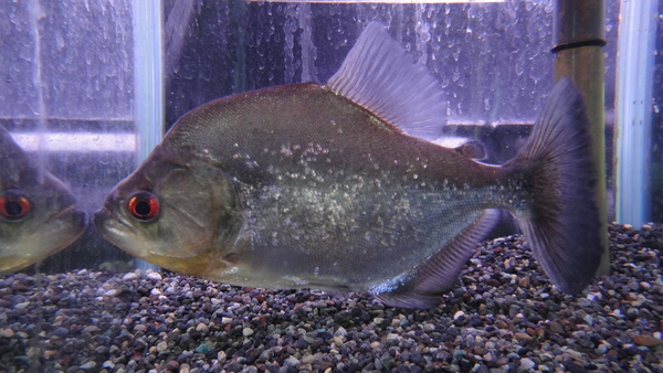 キレイな個体です!真っ赤な目に、紫がかった体色、ダイヤモンドブラックを思わせるようなギラギラの鱗、シングーのブラックピラニアの特徴がしっかり出た良個体です!サイズも迫力のあるサイズだし、体高もあってすごくかっこいいです!超オススメです!