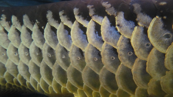これも大きいです!これも飼い込みですが、このサイズで輸入されることは滅多にありませんのでここまで大きく育った個体はかなり貴重です!この個体も少々エラが捲れていたのでカットしてありますが、こっちはエラ蓋の固い部分までは捲れていませんでしたので、絶対という約束はできませんがたぶんキレイに再生すると思います。餌は人工飼料でOKですので飼いやすいです!ピラヤやジャイアントイエローなんかと混泳させてみるのもいいかもしれませんね!?ただし、ピラニアの混泳にはリスクもありますので実践される場合はよく観察の上、自己責任で・・・。