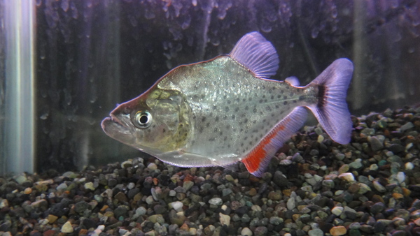 ホーランディピラニアはブラジルのマディラ川に分布する珍しいピラニアです。今回ホーランディのインボイスで入荷しましたがこの個体が本当にホーランディかは正直わかりません。あまり入荷のない種ですが、来るたびにホーランディの名前で違うピラニアが入荷しているような気がします・・・。マニアの方いかがですか!?オレンジの頬や小さく突き出た頭などはホーランディの特徴と言えると思うのですが、前に来た個体はもっと額のラインが滑らかで、こんなにカクカクしてなかったと思うのですが、どうだったかなぁ?まぁよく分からない謎のピラニアですが、珍しいしかっこいいです!だからオススメです!