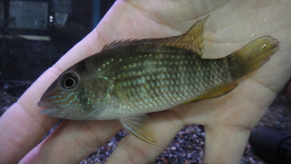 当店初入荷のペルー産の激レアシクリッドです!グリーンテラーのようなブルーアカラのような変わったシクリッドです。滅多に来ませんのでシクリッドマニアの方はおさえておきましょう!中段右の画像です。