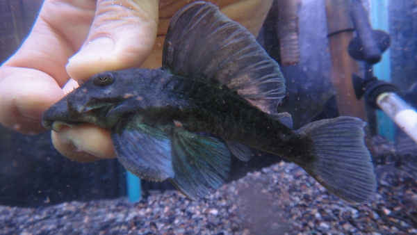青く輝く極美激レアナマズの入荷です!ペルー便でブルーバックキャットの混じりでごく稀に輸入される程度のナマズなのですが、今回はブラジルのマラジョー産の個体が入荷しました!図鑑などでは50~60cmになると書かれていることが多いのですが、アマゾン川上流域のペルーから輸入されるタイプはせいぜい30~40cm位までにしかなりません。海が近い河口の方が水の栄養状態が良く、魚はより大型化する傾向があるようですから、アマゾン川下流域のマラジョー産の個体はもしかしたら大きくなるかもしれませんね?!