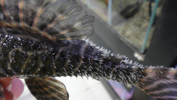 フォークテールクイーンゼブラペコルティア 上段の画像です。右は体側の棘のアップの画像です。