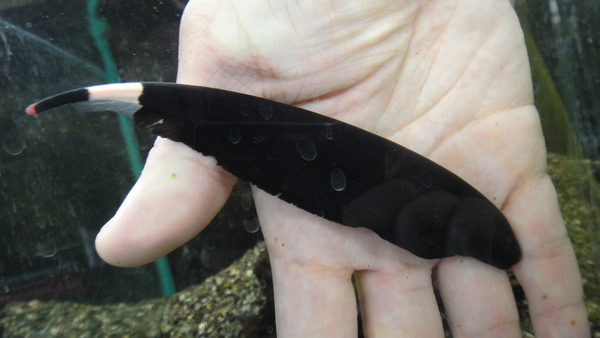 ブラジル産のワイルドは実はとっても珍しいんです!普通はワイルドで来てもほとんどがペルー産ですから。アマゾン川下流産のブラックゴーストにはでかくなるタイプが存在します!この個体がどこまで育つかはわかりませんが将来が楽しみです!!