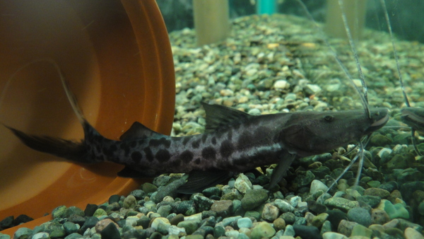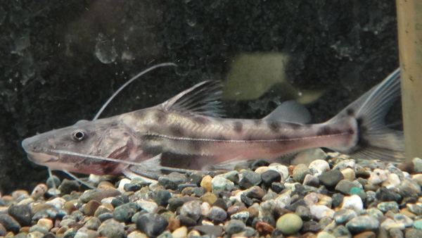 幼魚の頃はうちわみたいな大きな胸ビレが特徴のナマズで、大きくなるとタイガーシャベルを平たく伸ばしたような顔のナマズになります!!これも時期ものですよ!