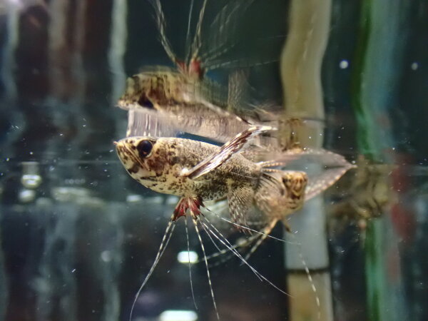 アロワナそっくりな顔をしたミニチュアアロワナみたいなアフリカの古代魚です。最大で15cm程の魚なのであまり大きな水槽でなくても十分に飼育が可能です。大きな水槽は置けないけどアロワナみたいな古代魚が飼ってみたいという方には特にオススメの魚です。左下の画像です。