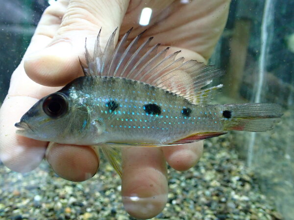 これも久しぶりの入荷です。目の下の青いラインが特徴で青や黄色の発色がキレイなゲオファーガス。今回はサイズ小さいからっていうのもありますが、久しぶりの割にそんなに値段高くなかったのでオススメですよ!左下の画像です。
