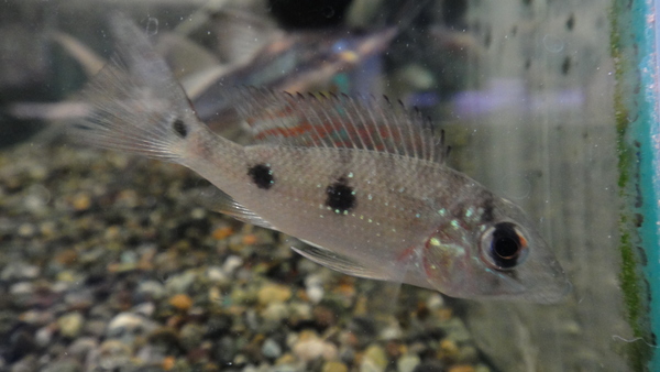 こっちはポピュラーなハイドロシナスガーの1種で、黒いスポット模様がキレイです!ビクーダほど大きくはなりませんがそれでも野生では50cmくらいになるらしいです。水槽の中ではそこまで大きくはならないと思いますけど・・・。この魚は成長が遅いんですよねぇ。まぁ、逆に大きくなりすぎない方がいいという方には色、模様もキレイだしオススメです!