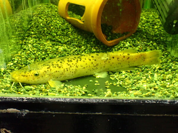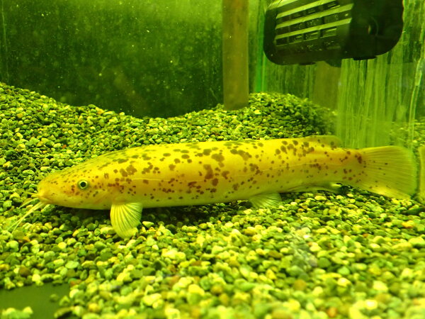 黄金のデンキナマズ再び!!去年の11月に入荷した時は即売れだったタンガニーカデンキナマズが再入荷!このナマズ素晴らしいです!本当に金色でいつ見てもほれぼれします。前回は着状態がかなり悪くドキドキしながらトリートメントしましたが今回は前回よりも全然良いですね。まぁ多少スレてたり水カビがポツって付いてたりはしますが全然大したことないです。たぶん1週間もあればキレイに治ると思います。前回お問い合わせいただいたのに販売できずにご迷惑をおかけしましたお客様、お待たせしました!今回は前回よりも値段も安くなってますのでぜひ再度のお問い合わせ、ご注文お待ちしております!ただし入荷は少数のみなのでお早めに!上段、中段左の画像です。薬浴中で水が黄色くなってるので魚の体色が分かりにくくてすみせん・・・。上段の画像の2個体は売約になりました。残りは中段左の画像の個体になります。背中にスレがあるので販売はトリートメントが済んでからになります。この個体は他の個体より頭が大きくてちょっと厳ついです。雌雄差とかなのかな??29日追記:中段左の画像の個体も売約になりました。