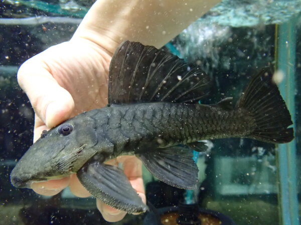 アマパ産の激レアカイザープレコです。名前の通りで真っ黒なので派手さはないですが渋くてカッコいいです!本当はこの倍位する高級なプレコなんですが、今回1匹のみですが安く仕入れることができたので大特価です!マニアの方はお見逃しなく!中段左の画像です。