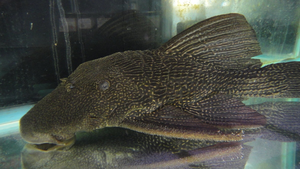 強烈!!デカイです!!アシュラの入荷は結構久しぶりなのですが、こんなデカイのは初めてです!最恐最悪のプレコで、とにかく凶暴な個体が多いです!中層や表層を泳いでる魚にまでトゲだらけの胸ビレを広げて攻撃したりするので混泳の際は注意が必要です!でもカッコイイんです、このプレコは!だからつい欲しくなっちゃうのは私だけではないと思います!この個体は問屋さんでしばらくストックされていた個体でエサ食いも良く、状態もばっちりです!1匹のみです、お早めに!!