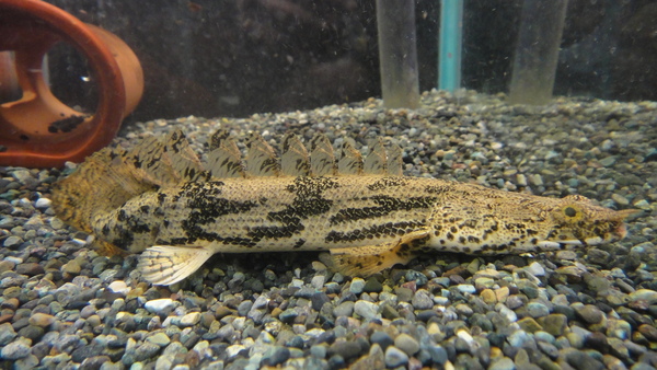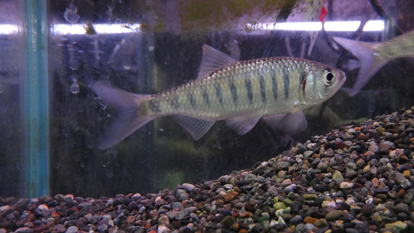なんかあまり聞きなれない名前のバリリウスですが、25cmくらいになるそうで、結構大きくなる種類みたいです。輸入元の問屋さんの社長は過去に22~23cmの個体は輸入したことがあるそうです。現状はまぁちょっと大きめサイズで入荷した普通のバリリウスといった感じですが、これが20cmを超えたらかなりキレイでカッコイイ魚だと思います!!