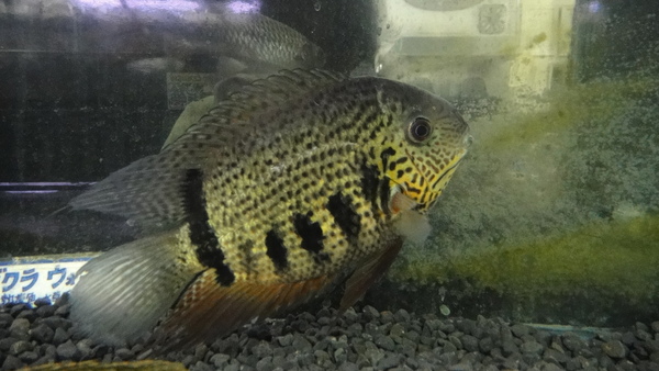 緑色のシクリッドです。ここまで濃い緑色の淡水魚って他にいないんじゃないでしょうか??昔はものすごく高い幻の魚だったんですけど、今ではけっこう一般的な魚になりましたね。値段も安くなってます!