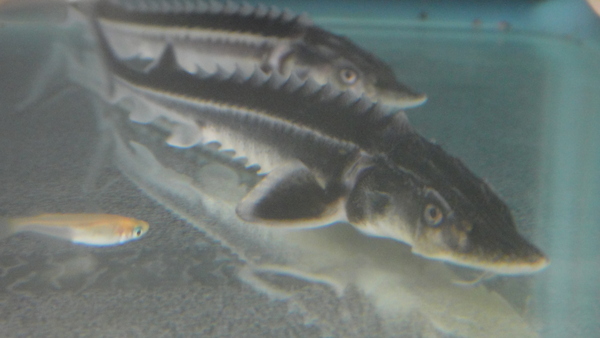 今回入荷した3種の中では一番普通っぽいチョウザメです。まぁ、普通のチョウザメって何だよ?!って感じですが、吻部の長さや体型はロシアとホシの中間的な感じです。ベステルに並んでチョウザメの中でも特に飼育しやすいのではないでしょうか?右上の画像です。